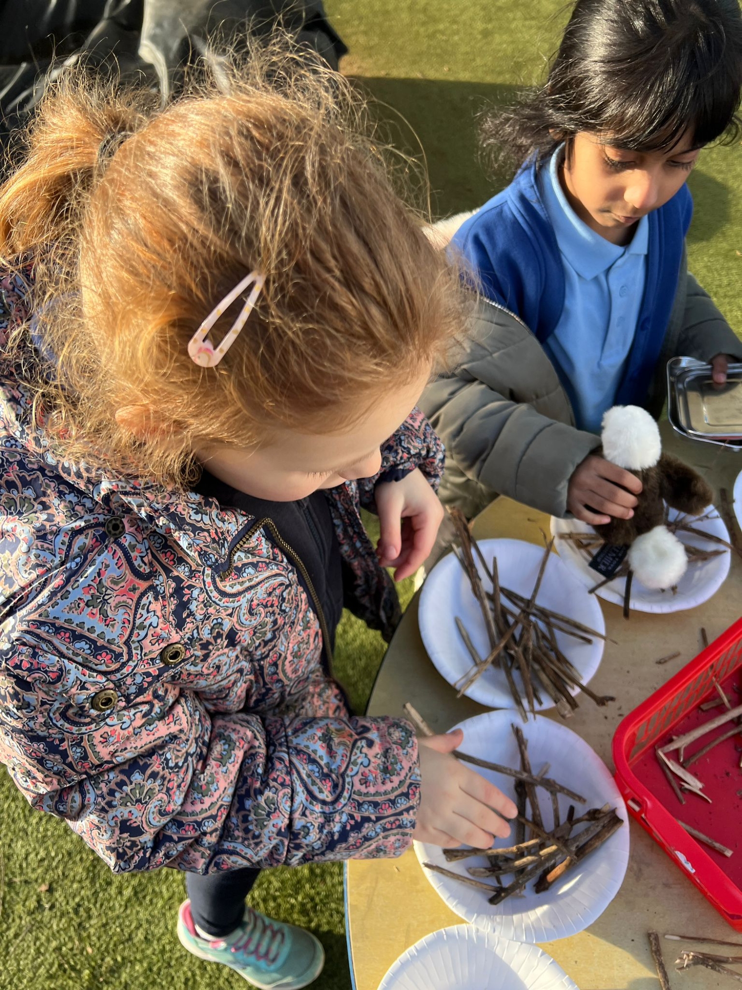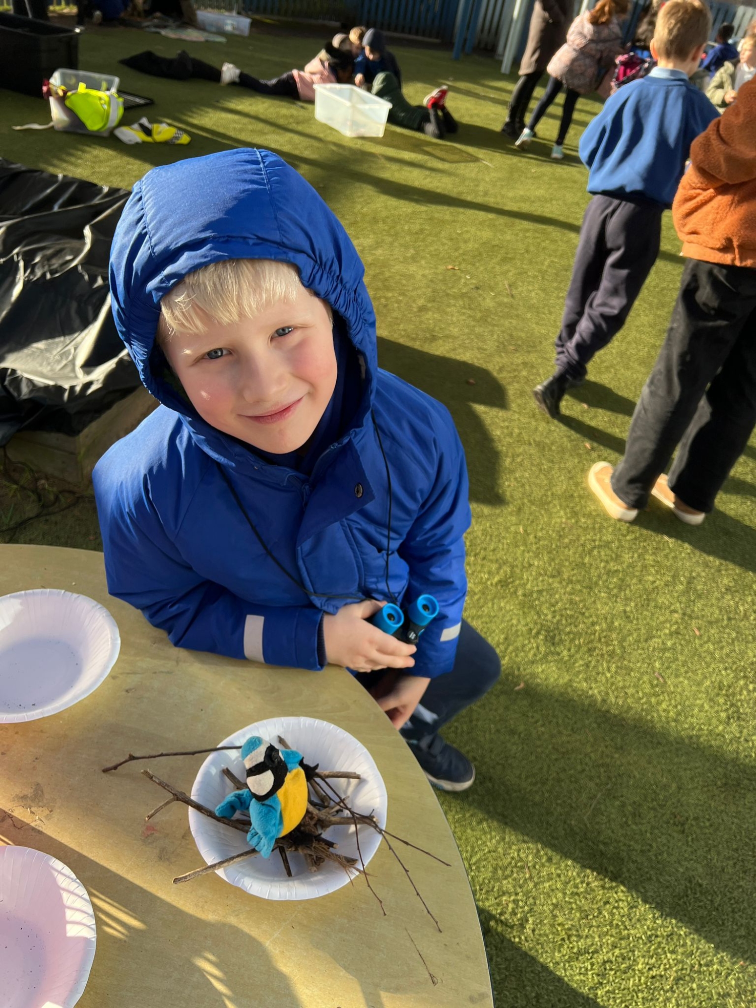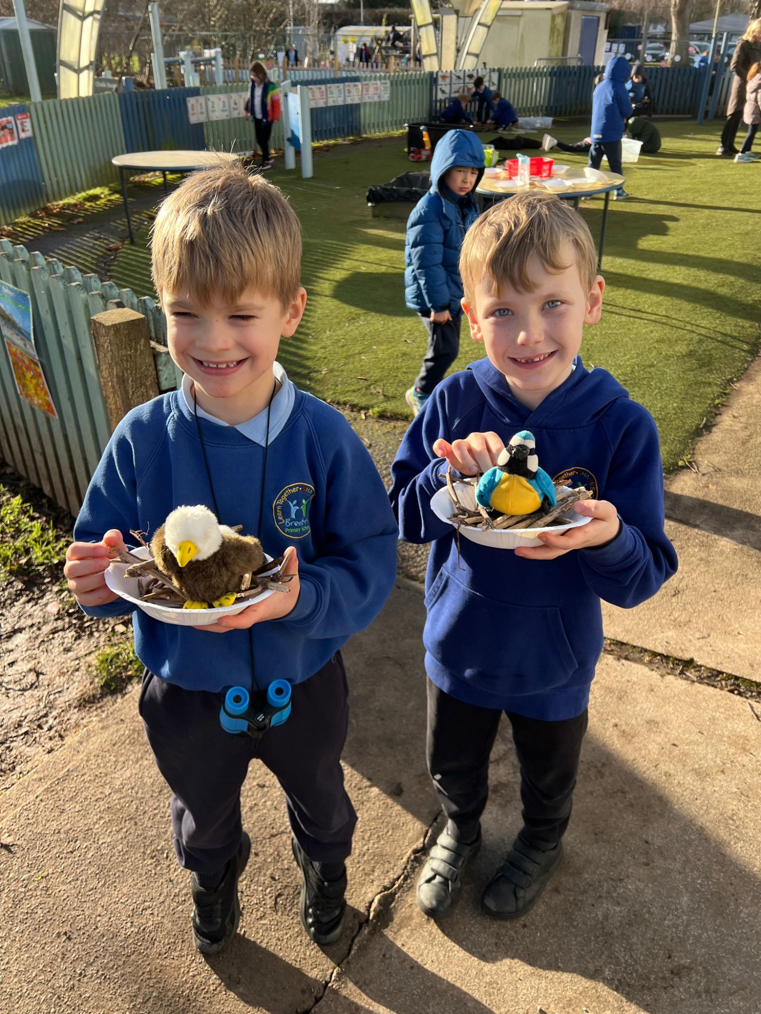 Year 1 and Year 2 enjoyed exploring our outdoor classroom today. Some children got creative building nests for the birds, others went bird-spotting with binoculars, and a few even built their own dinosaur world! 🐦🦖