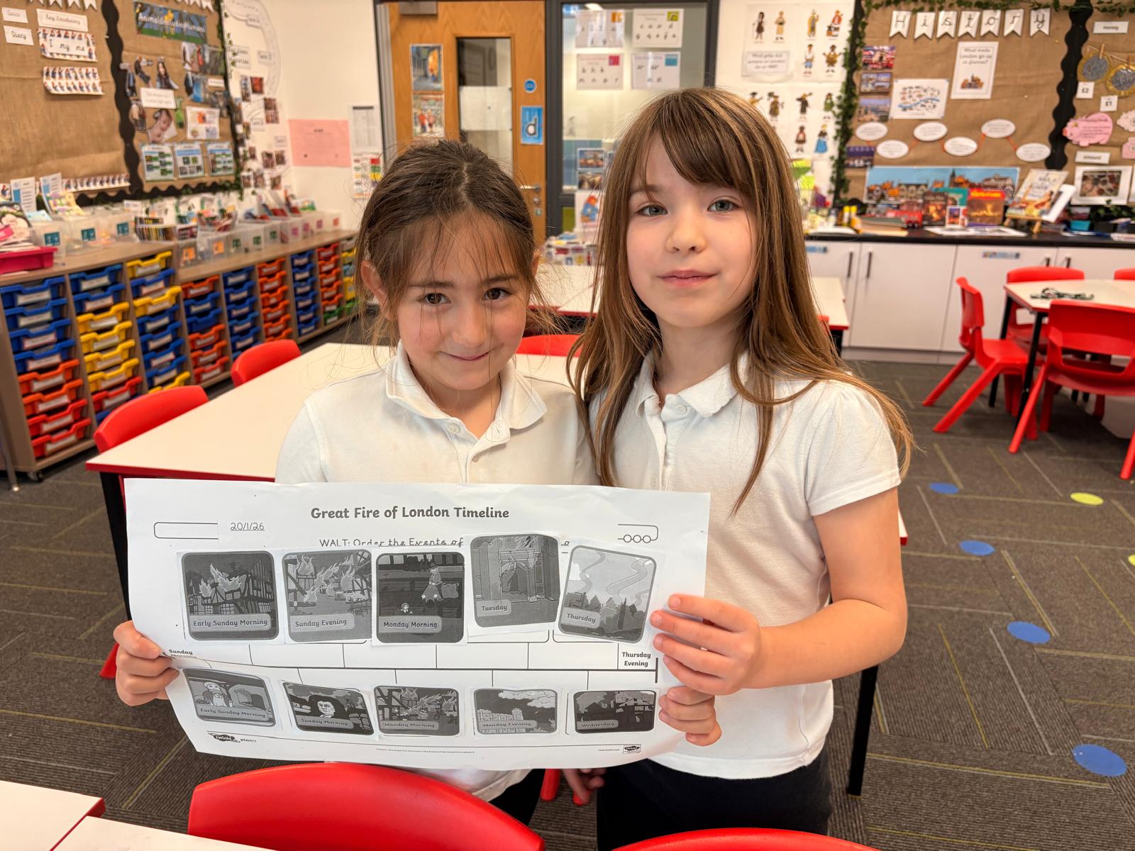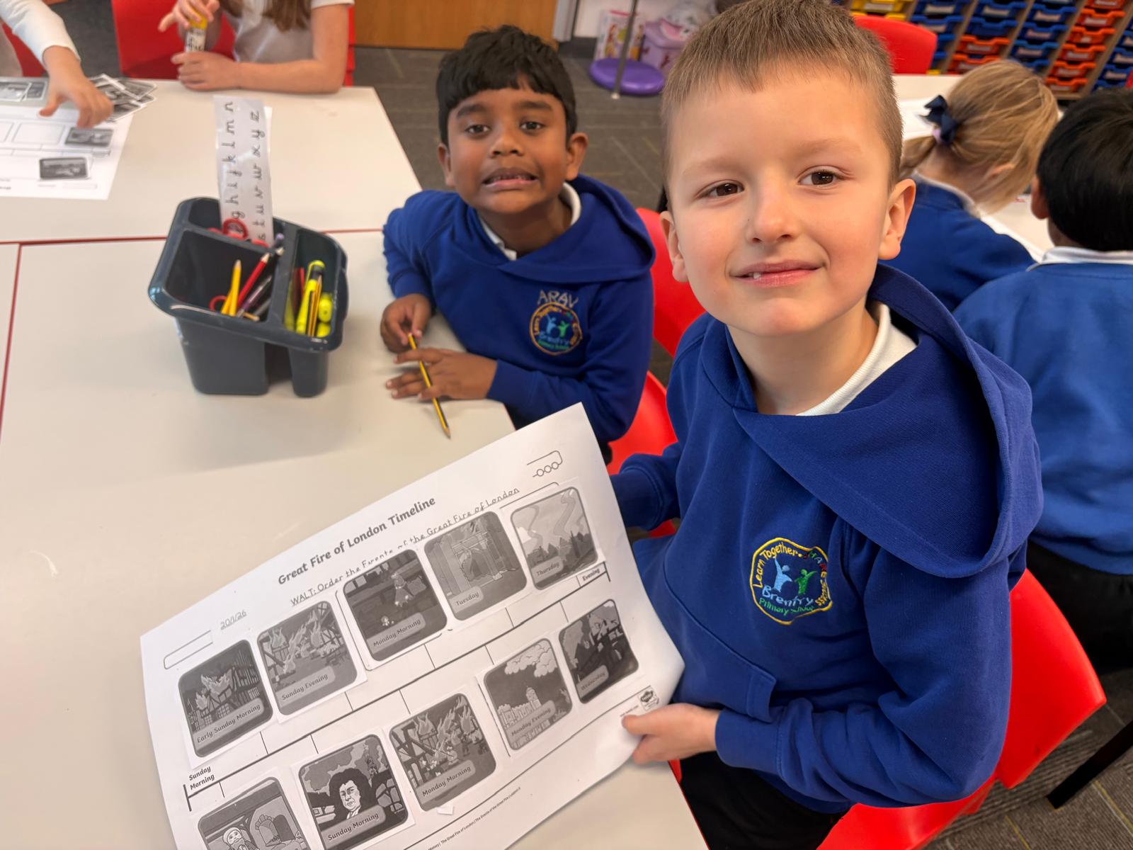 Year 2 have been learning about the Great Fire of London in history today, ordering the key events and discovering how it began in a bakery.