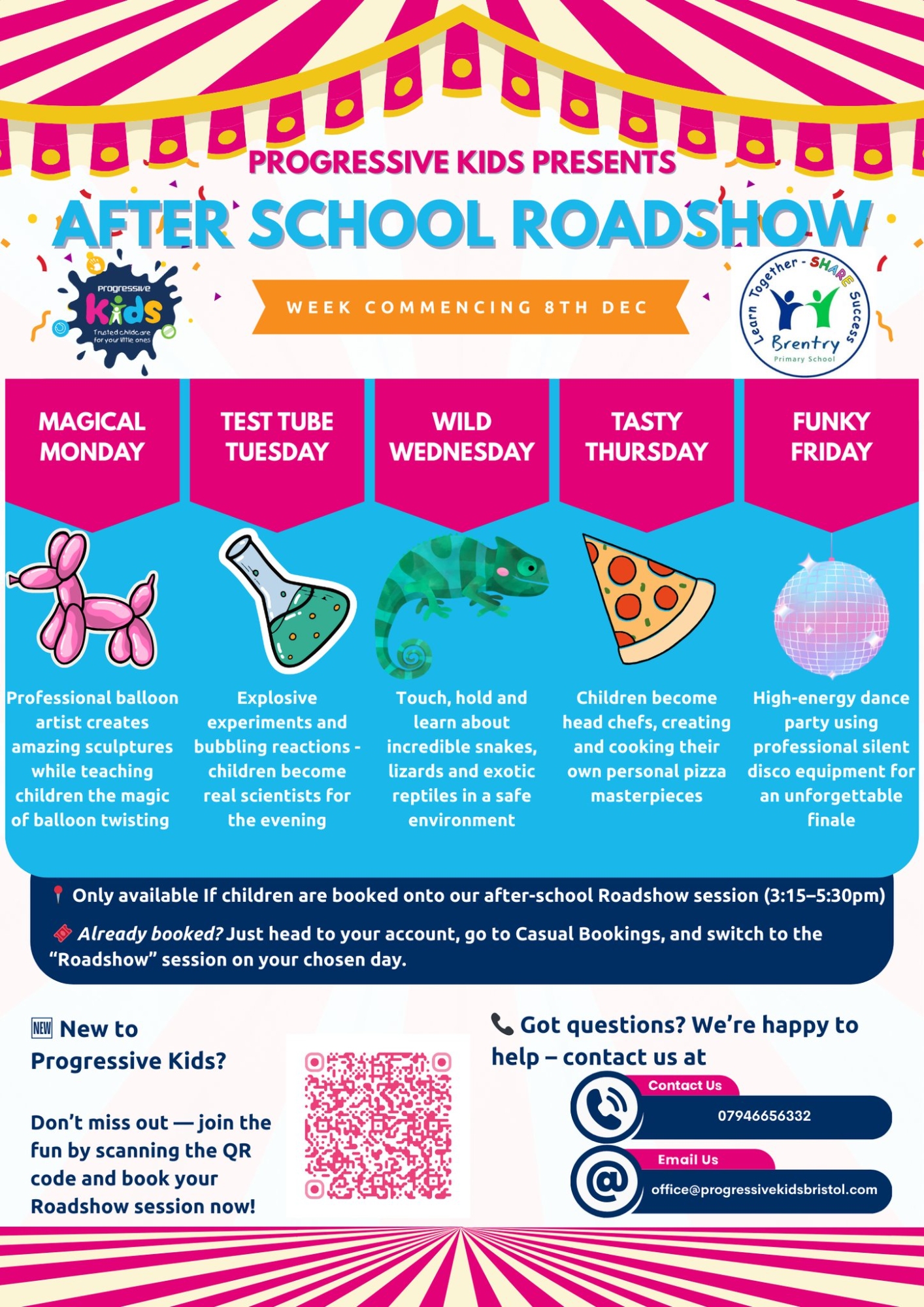 The Progressive Kids Roadshow will be back at Brentry Primary from Monday 8th December and there is still time to book. Don’t miss out – there are only a few spaces left for each workshop!